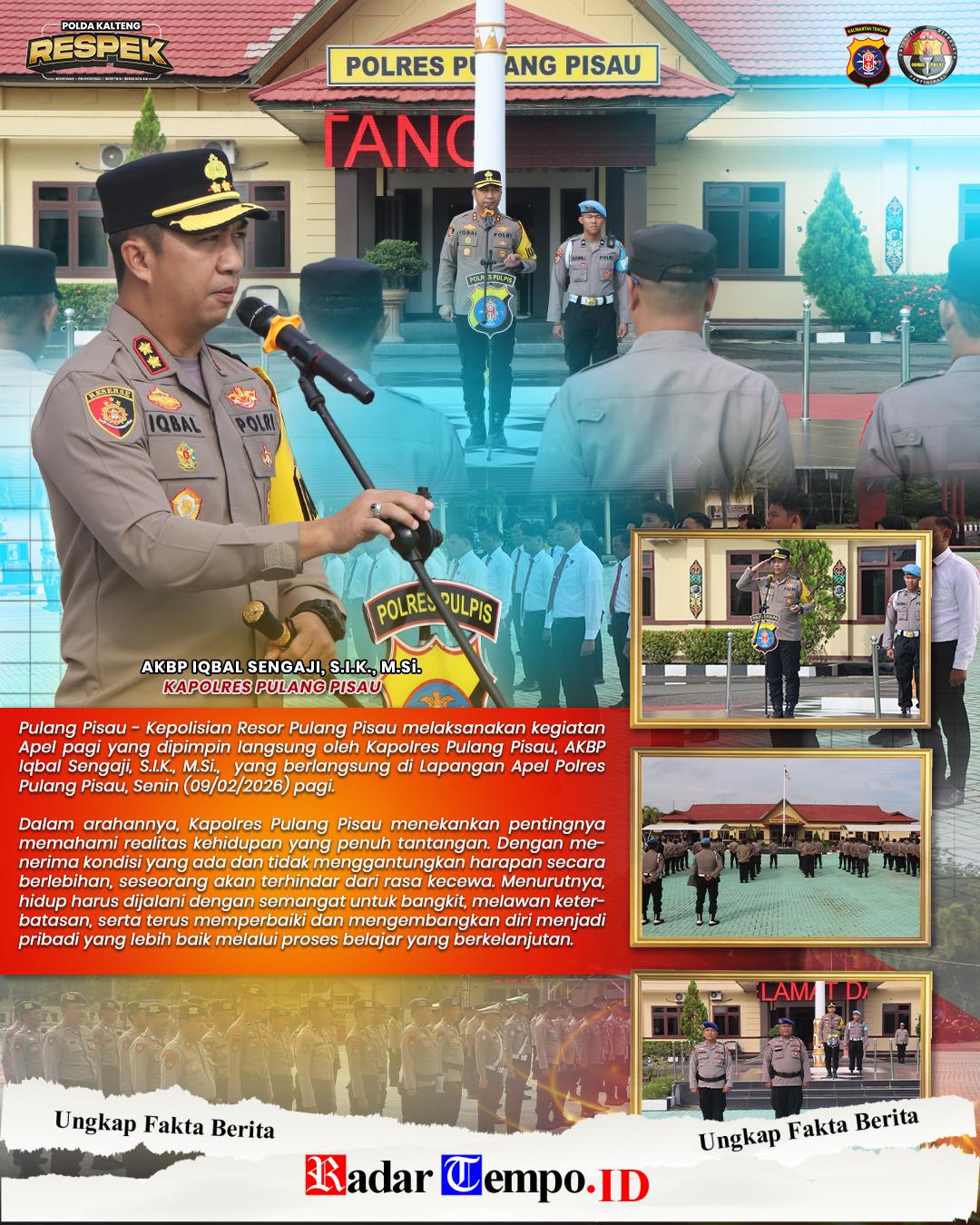 Radartempo.id Pulang Pisau – Kepolisian Resor (Polres) Pulang Pisau menggelar kegiatan apel pagi sekaligus Jam Pimpinan yang dipimpin langsung oleh Kapolres Pulang Pisau, AKBP Iqbal Sengaji, S.I.K., M.Si.. Kegiatan yang berlangsung di Lapangan Apel Polres Pulang Pisau pada Senin (09/02/2026) pagi ini diikuti oleh Wakapolres Kompol Sahat Martua Pasaribu, S.H., para Pejabat Utama (PJU), serta seluruh personel yang terdiri dari Perwira, Bintara, dan ASN.