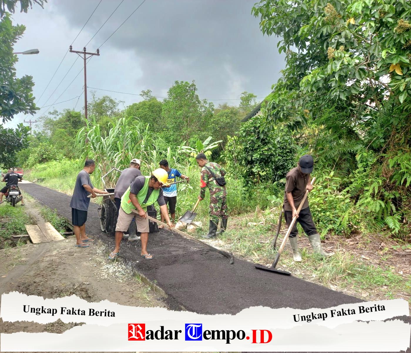 Sambas Radartempo.id Sebagai wujud kepedulian dan kebersamaan dalam membangun wilayah binaan, Babinsa Koramil 01/Sambas Kodim 1208/Sambas Sertu Ketut turut membantu warga melaksanakan kegiatan pengaspalan jalan gang di wilayah binaannya, Senin (05/01/26).