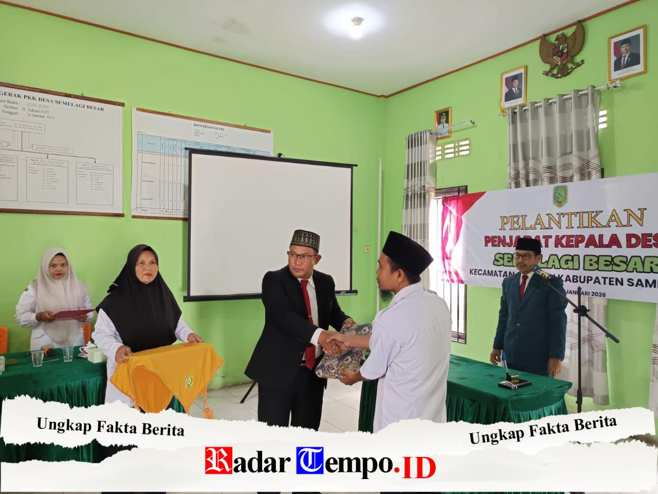 Sambas – Babinsa Desa Semelagi Besar, Koramil 06/Selakau Kodim 1208/Sambas Sertu Luwiyanto menghadiri kegiatan pelantikan dan pengambilan sumpah jabatan Kepala Desa Semelagi Besar yang dilaksanakan di aula kantor Desa Semelagi Besar, Kecamatan Selakau, Kabupaten Sambas, Sabtu (10/01/26).