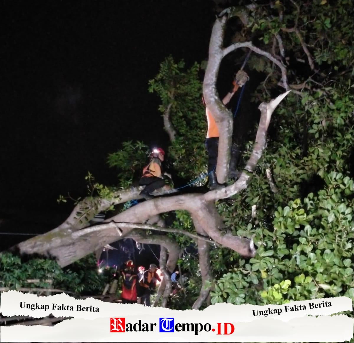 “Pohon yang tumbang terdiri dari pohon mangga berdiameter sekitar 50 sentimeter, pohon nangka sekitar 50 sentimeter, dan pohon jambu mete dengan diameter kurang lebih 70 sentimeter. Ketiganya roboh akibat terpaan angin kencang dan melintang di badan jalan,” terang Hozin.