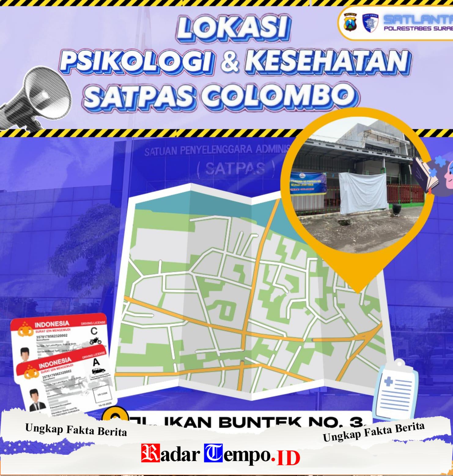Terkait perihal tersebut di atas, Kanit Regident Satpas SIM Colombo yakni AKP Tri Arda Meidiansyah, S.TR.K, Sik, melalui Kasubnit Ipda Hariyo Indarto, di dampingi Ipda Dani Kurniawan, serta Aipda Wage Santoso (Tim Pokja Praktek) mengatakan, Rabo (08/04/2026), memang betul Layanan tes psikologi dan kesehatan telah berpindah ke alamat Jl. Ikan Buntek No. 3, Perak Barat, Surabaya,” ujarnya.