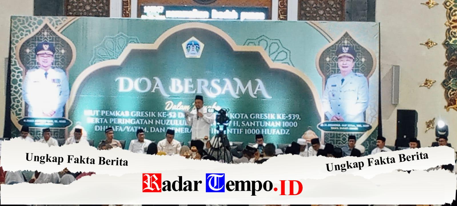 Gresik Radartempo.id – Pemerintah Kabupaten Gresik menggelar kegiatan Doa Bersama dalam rangka memperingati Hari Ulang Tahun ke-52 Pemerintah Kabupaten Gresik dan Hari Jadi ke-539 Kota Gresik yang dirangkai dengan peringatan Nuzulul Qur’an 1447 Hijriah. Kegiatan religius tersebut berlangsung khidmat dengan dihadiri unsur Forkopimda, tokoh agama, tokoh masyarakat, serta ratusan undangan lainnya.