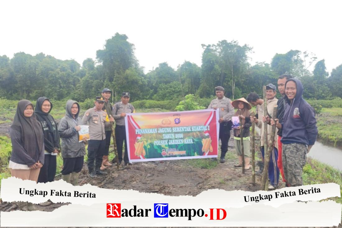 Radartempo.id Jabiren Raya – Sebagai langkah konkret dalam mengimplementasikan visi besar pemerintah pusat, Polsek Jabiren Raya bergerak cepat menyukseskan program ketahanan pangan. Pada Rabu (04/02/2026) pukul 10.00 WIB, jajaran kepolisian bersama masyarakat melaksanakan penanaman jagung serentak kuartal I tahun 2026.