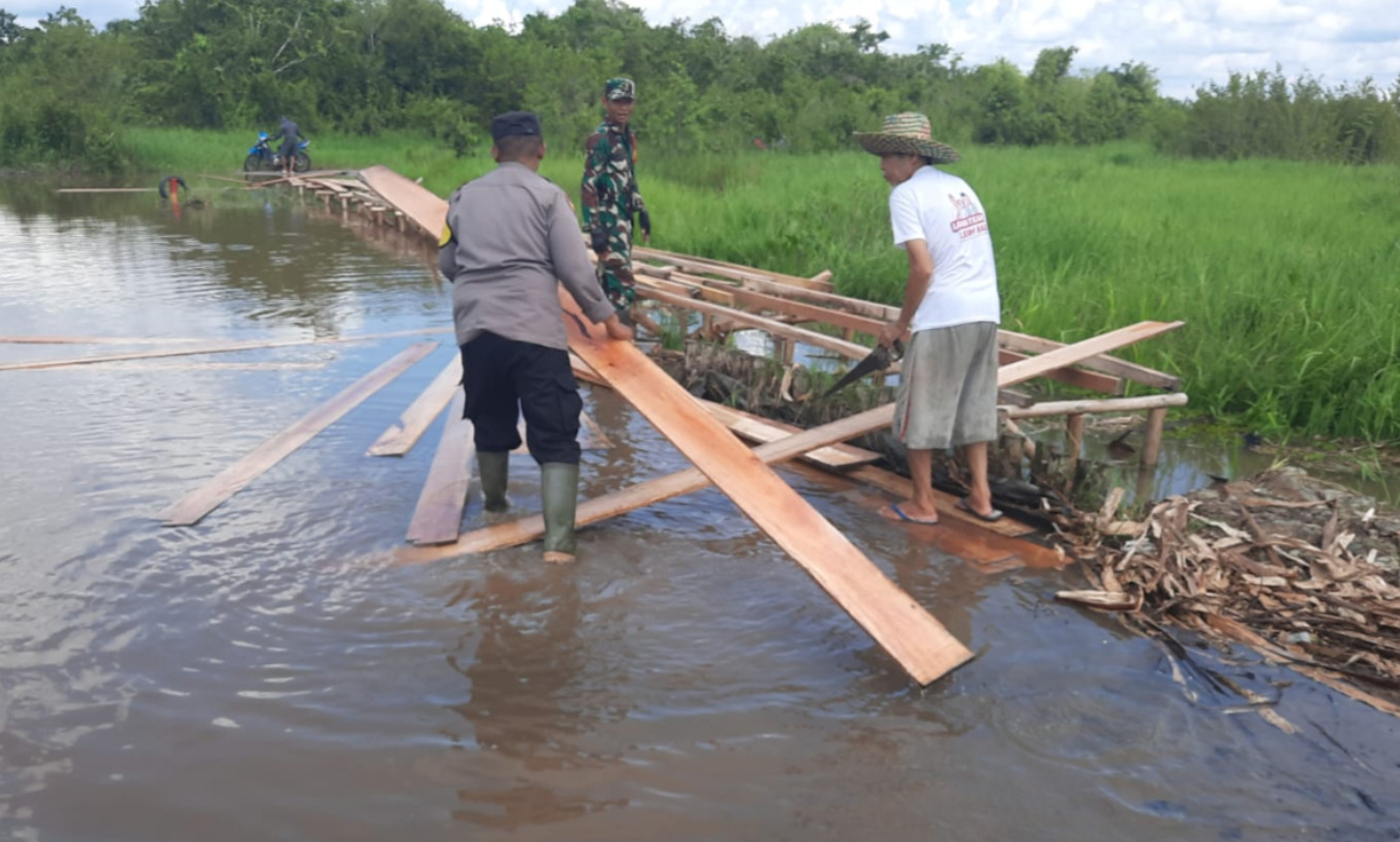 Kehadiran Bhabinkamtibmas dan Babinsa dalam kegiatan ini tidak hanya sekadar mengawasi, tetapi juga aktif terlibat langsung dalam proses pembangunan. Tujuannya adalah membantu kelancaran mobilitas masyarakat Desa Tumbang Nusa yang terdampak banjir lokal.