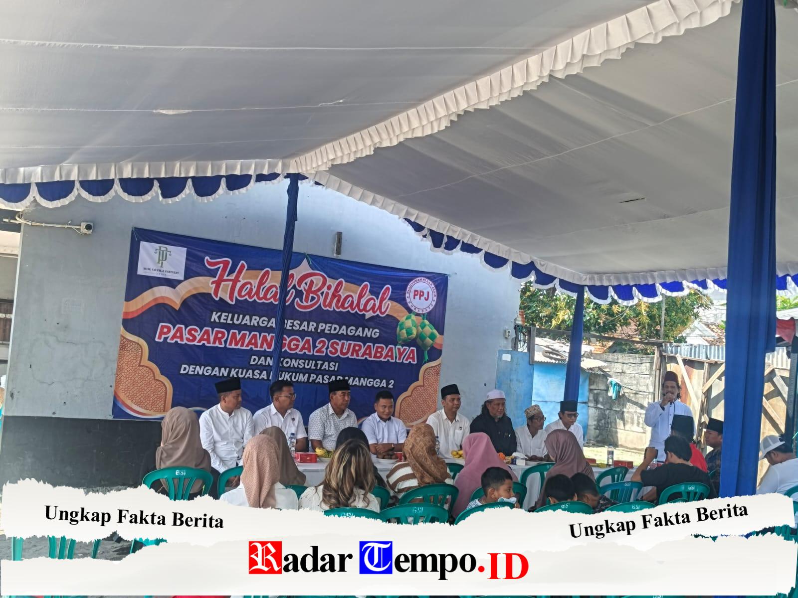 Radartempo id — SURABAYA  Suasana hangat penuh kebersamaan mewarnai kegiatan Halalbihalal yang digelar keluarga besar pedagang Pasar Mangga 2 Surabaya pada Minggu (5/4/2026). Tidak sekadar menjadi ajang saling memaafkan pasca Hari Raya Idulfitri, kegiatan ini juga berkembang menjadi forum strategis untuk membahas persoalan hukum serta keberlangsungan pasar malam yang berdampak langsung pada perekonomian warga.