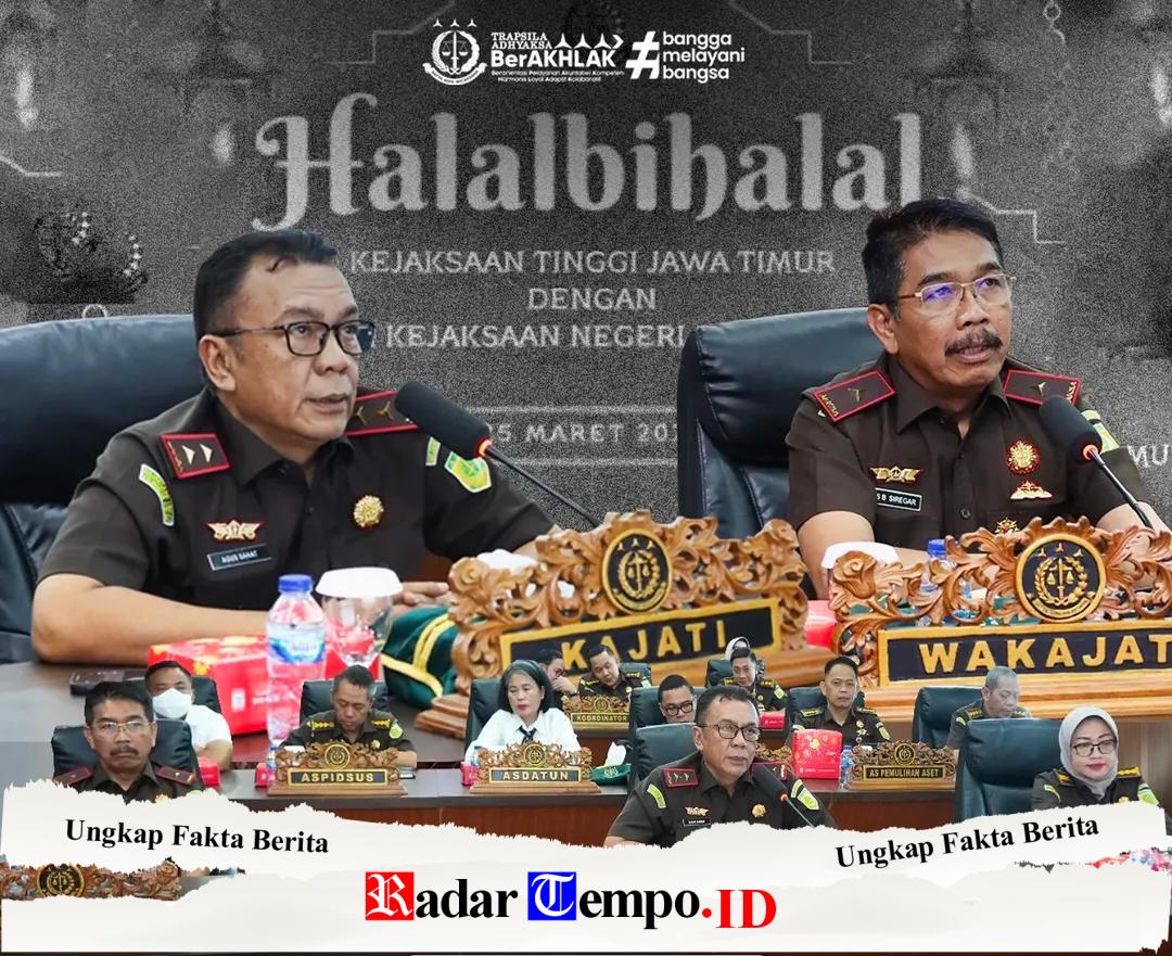 RADARTEMPO.ID Surabaya – Kejaksaan Tinggi Jawa Timur menggelar kegiatan halalbihalal secara virtual bersama seluruh satuan kerja Kejaksaan Negeri se-Jawa Timur, Rabu (25/3/2026). Kegiatan yang berlangsung di Ruang Vicon Kejati Jatim ini dipimpin langsung oleh Kepala Kejaksaan Tinggi Jawa Timur, Agus Sahat ST., S.H., M.H., didampingi Wakil Kajati, para Asisten, serta para Koordinator.