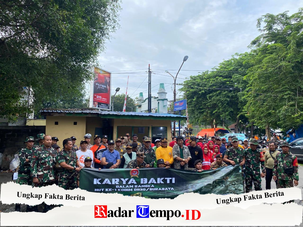 Radartempo.id Surabaya – Kamis, 15 Januari 2026 Peringatan HUT ke-1 Kodim 0830/Surabaya tidak berhenti pada seremoni belaka. Semangat pengabdian justru dibuktikan melalui aksi nyata di tengah masyarakat. Bertempat di Jalan Gembong III, Kelurahan Kapasan, warga RW 5 bersama 3 Pilar Kecamatan Simokerto menggelar kerja bakti massal peduli kebersihan lingkungan, Kamis (15/1/2026).