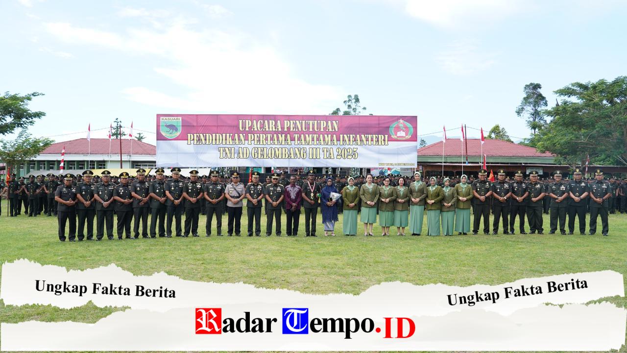 RADARTEMPO.ID MOMIWAREN – Prajurit Tamtama TNI AD yang disiapkan dalam Batalyon Teritorial Pembangunan (Yon TP) dibina sebagai kekuatan utama dengan kemampuan teritorial, fisik, dan mental yang tangguh. Hal tersebut disampaikan melalui amanat tertulis Kasad yang dibacakan oleh Irdam XVIII/Kasuari Brigjen TNI Tri Saktiyono pada upacara penutupan Pendidikan Pertama Tamtama TNI AD Gelombang III TA 2025 di Rindam XVIII/Kasuari, Momiwaren, Manokwari Selatan, Rabu (4/2/2026).