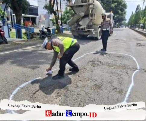 Nganjuk Radartempo.id — Satlantas Polres Nganjuk menandai sejumlah jalan berlubang di Jalur Nasional, Selasa (3/3/2026). Langkah ini dilakukan Jelang Arus Mudik Lebaran.