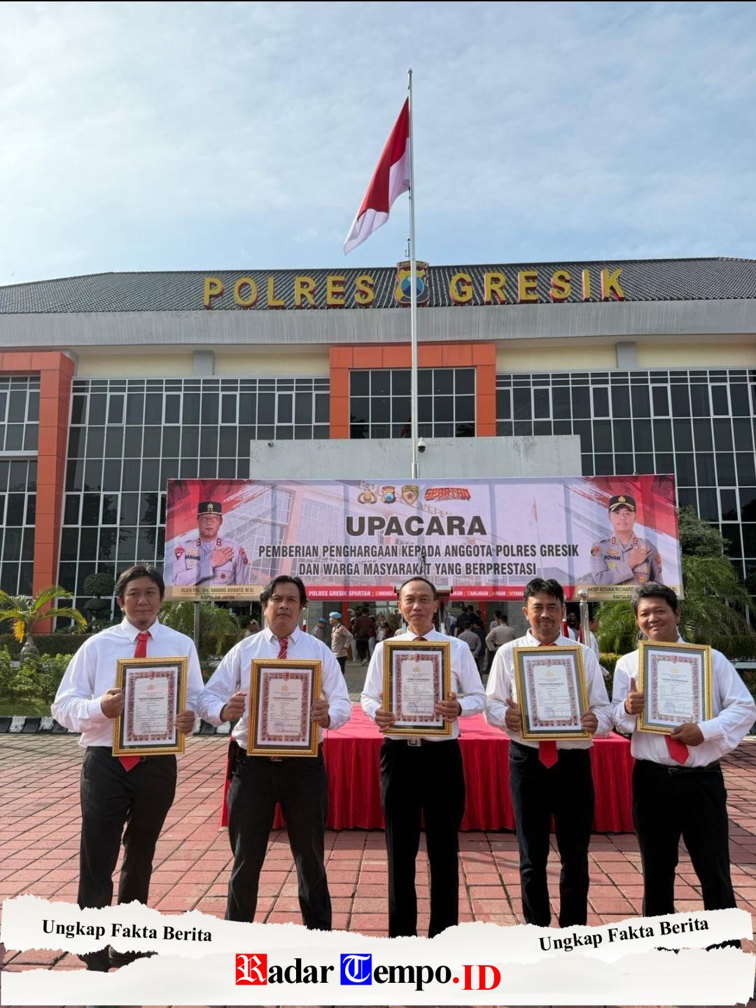 Upacara berlangsung khidmat dan dihadiri Wakapolres Gresik, para Pejabat Utama, serta Kapolsek jajaran. Kehadiran para pimpinan tersebut menjadi simbol bahwa penghargaan bukan sekadar milik individu, melainkan kemenangan kolektif sebuah organisasi yang solid dan berkomitmen melayani masyarakat.