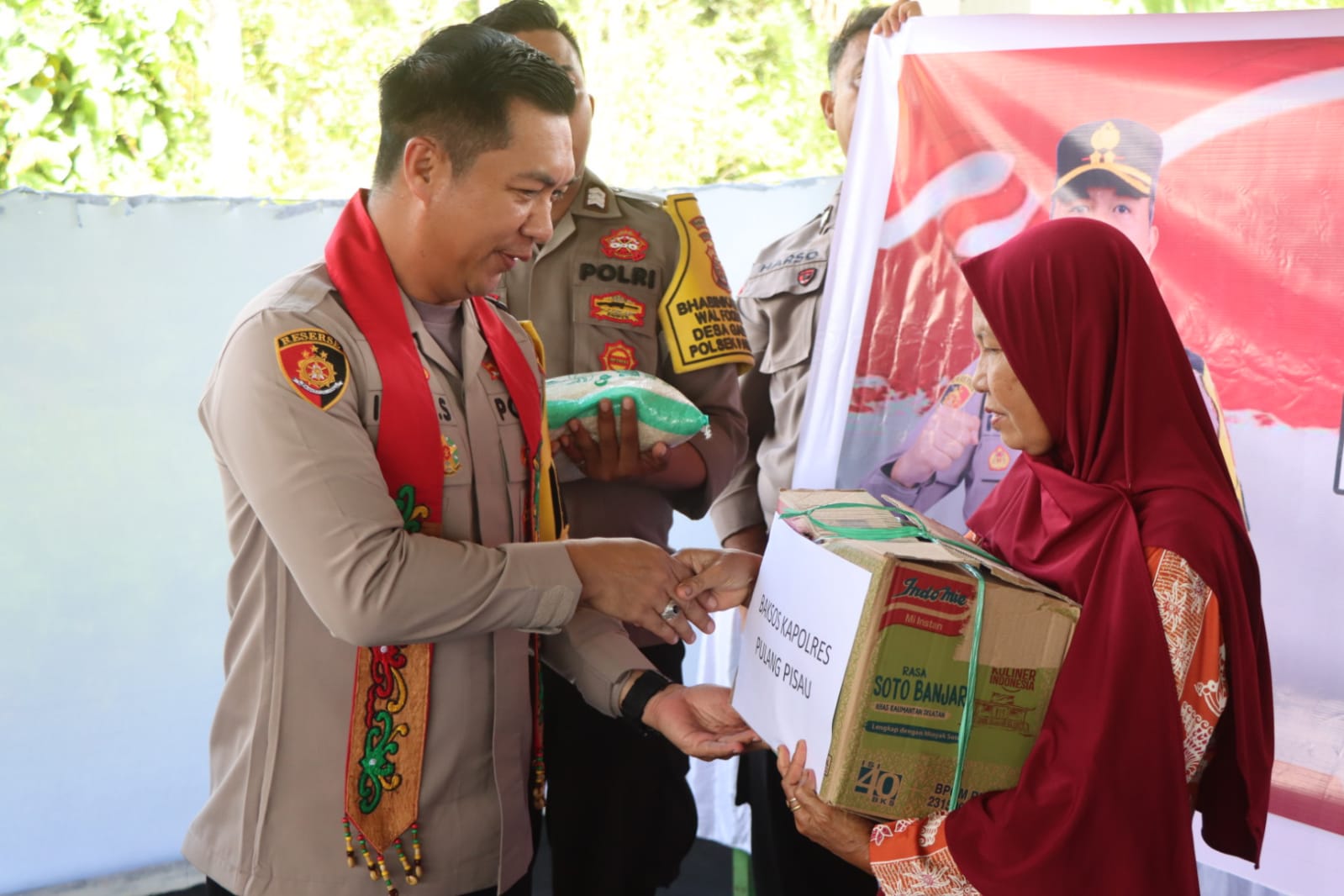 Foto: Kapolres Pulang Pisau Serahkan Bantuan Sosial ke Warga Saat Sambangi Polsek Jajaran