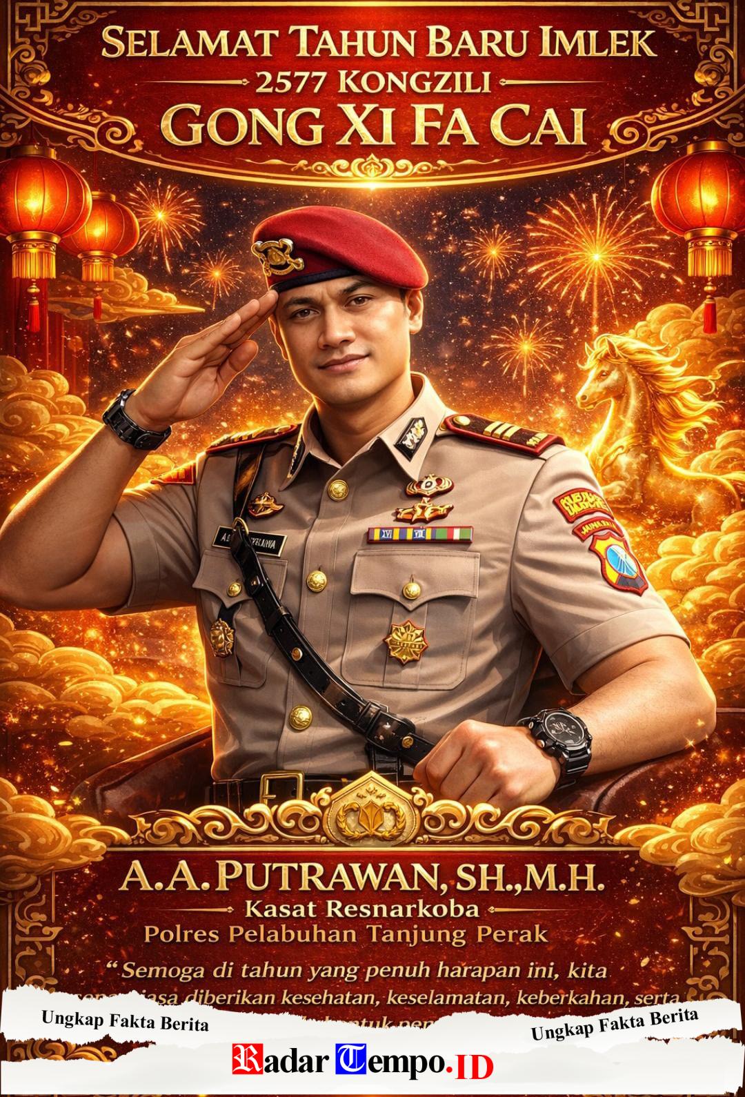RADARTEMPO.ID Surabaya – Dalam semangat kebersamaan dan toleransi antarumat beragama, Kepala Satuan Reserse Narkoba Polres Pelabuhan Tanjung Perak, Agus Adik Putrawan, S.H., M.H., menyampaikan ucapan Selamat Tahun Baru Imlek 2557 Kongzili kepada seluruh masyarakat yang merayakan.