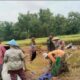 Polisi bersama warga mengevakuasi korban dan mengamankan kendaraan yang terlibat.