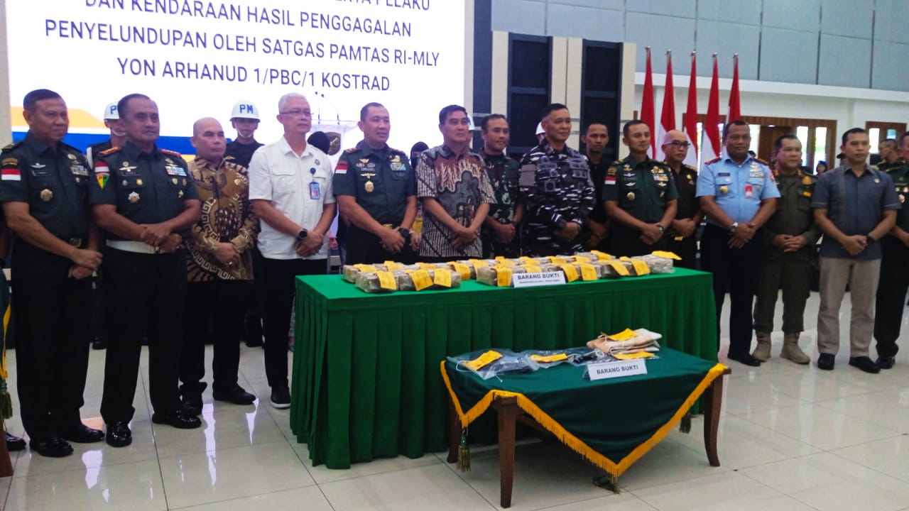 Kodaeral XII Hadiri Serah Terima Barang Bukti Penyelundupan Narkotika oleh Satgas Pamtas RI–MLY