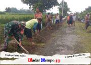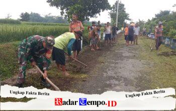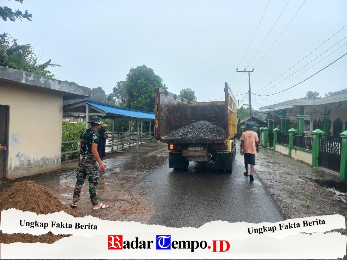 Di lapangan, terlihat anggota TNI bersama masyarakat bahu-membahu melakukan berbagai pekerjaan, mulai dari penataan material hingga persiapan konstruksi lanjutan.