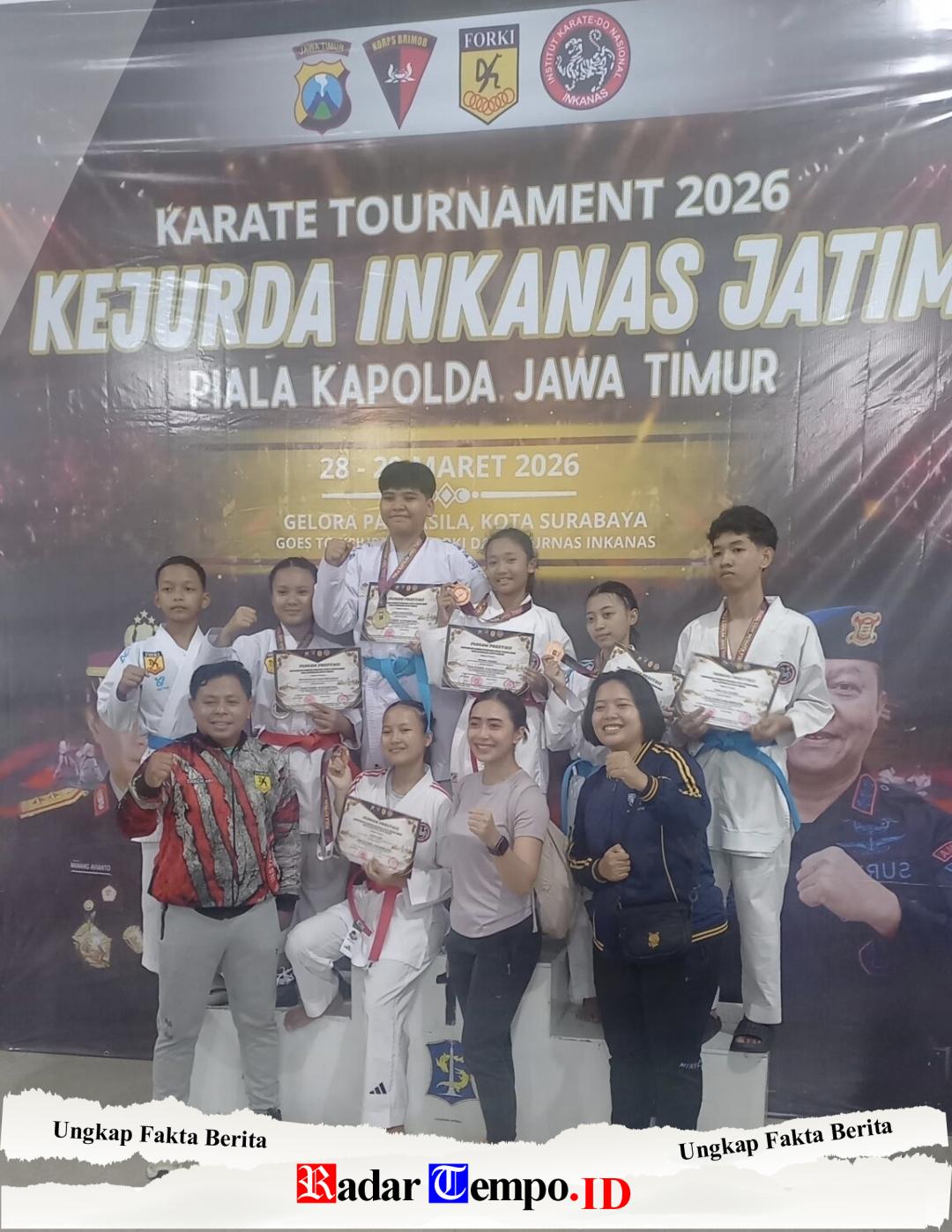 Radartempo.id — PASURUAN Kontingen karate Institut Karate-Do Nasional (Inkanas) binaan Polres Pasuruan berhasil memborong enam medali dalam Kejuaraan Karate Piala Kapolda Jawa Timur 2026 yang digelar di Surabaya pada Sabtu (28/3/2026).