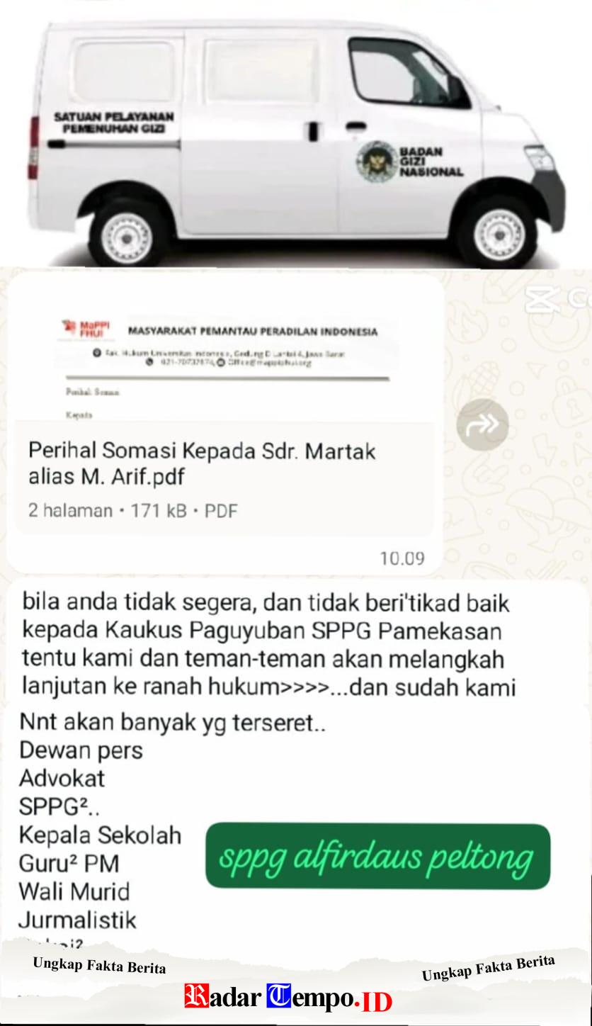 RADARTEMPO.ID PAMEKASAN Polemik pemberitaan terkait program MBG berbuntut panjang. Seorang wartawan di Kabupaten Pamekasan disomasi oleh pihak SPPG Alfirdaus Peltong setelah memuat laporan berdasarkan aduan wali murid yang mempertanyakan pelaksanaan program tersebut.pamekasan(02/03/26)