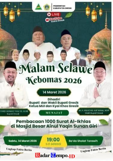 Gresik Radartempo.id — Menyambut tradisi Malam Selawe atau Malam ke-25 bulan Ramadhan, Pemerintah Kecamatan Kebomas, Kabupaten Gresik, akan memberlakukan penutupan sementara sejumlah Akses jalan di kawasan sekitar Jalan Sunan Giri hingga Jalan Sunan Prapen pada Sabtu (14/3/2026).