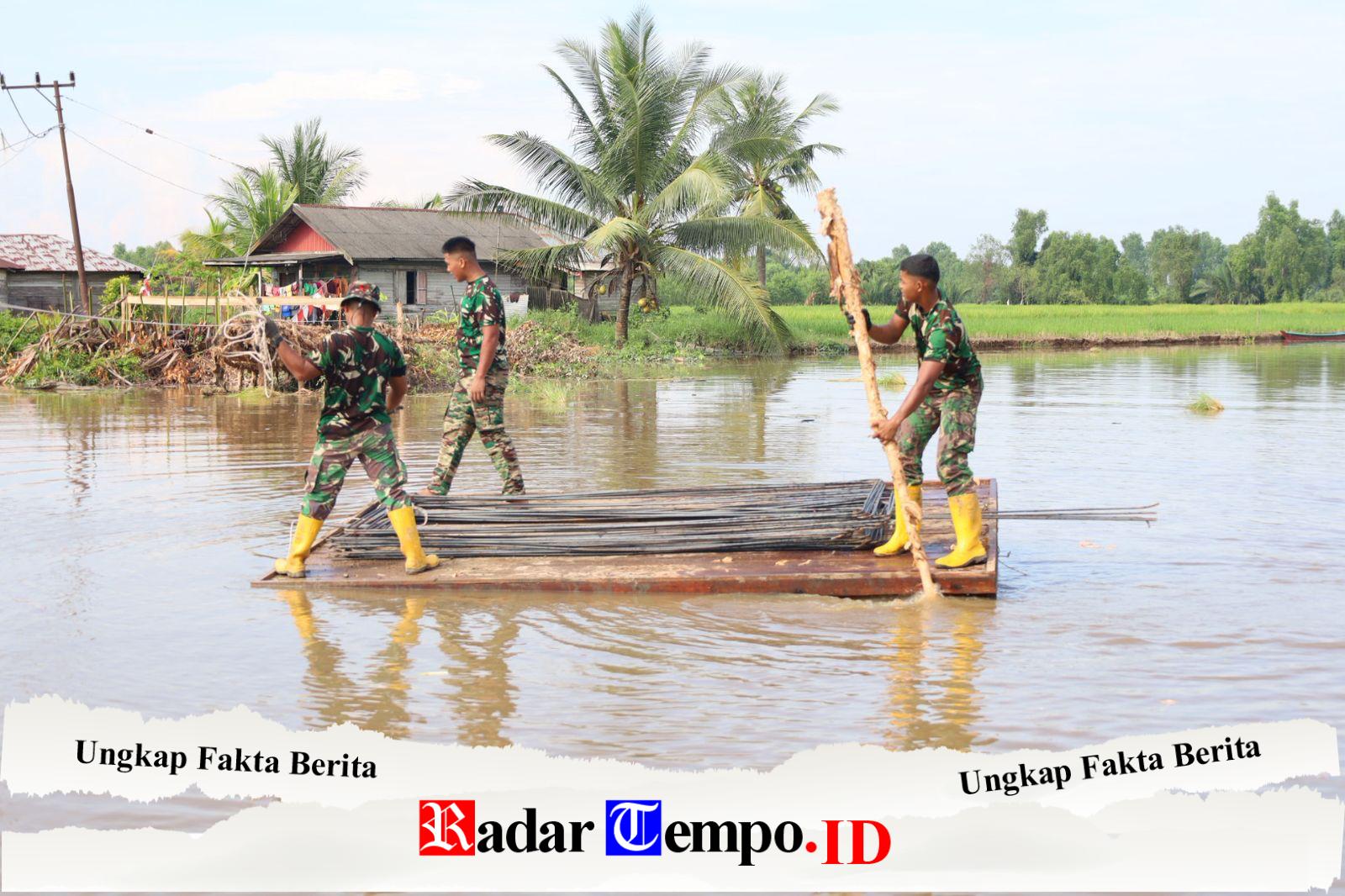 Tanah Laut – Personel Kodim 1009/Tanah Laut terus menunjukkan semangat tinggi dalam mendukung percepatan pembangunan Jembatan Garuda di Desa Handil Labuan Amas, Kecamatan Bumi Makmur, Kabupaten Tanah Laut. Meski dihadapkan dengan medan yang sulit, semangat para prajurit tak surut. Mereka kembali melanjutkan pengangkutan material menuju titik pembangunan yang berada di seberang sungai, Minggu (19/04/2026).
