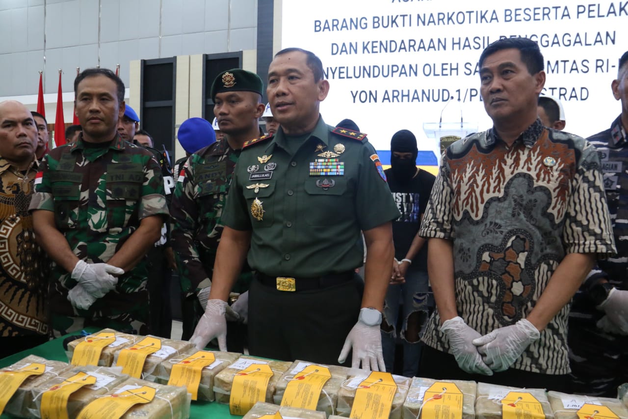 Dihadapan awak media, Pangdam XII/Tpr Mayjen TNI Jamallulael mengucapkan terimakasih kepada seluruh jajaran serta BNN, kepolisian, bea cukai, satgas Intel dari BIN, BAIS, Kodam dan Korem serta Satgas Teritorial atas keberhasilan pengungkapan kasus tersebut.