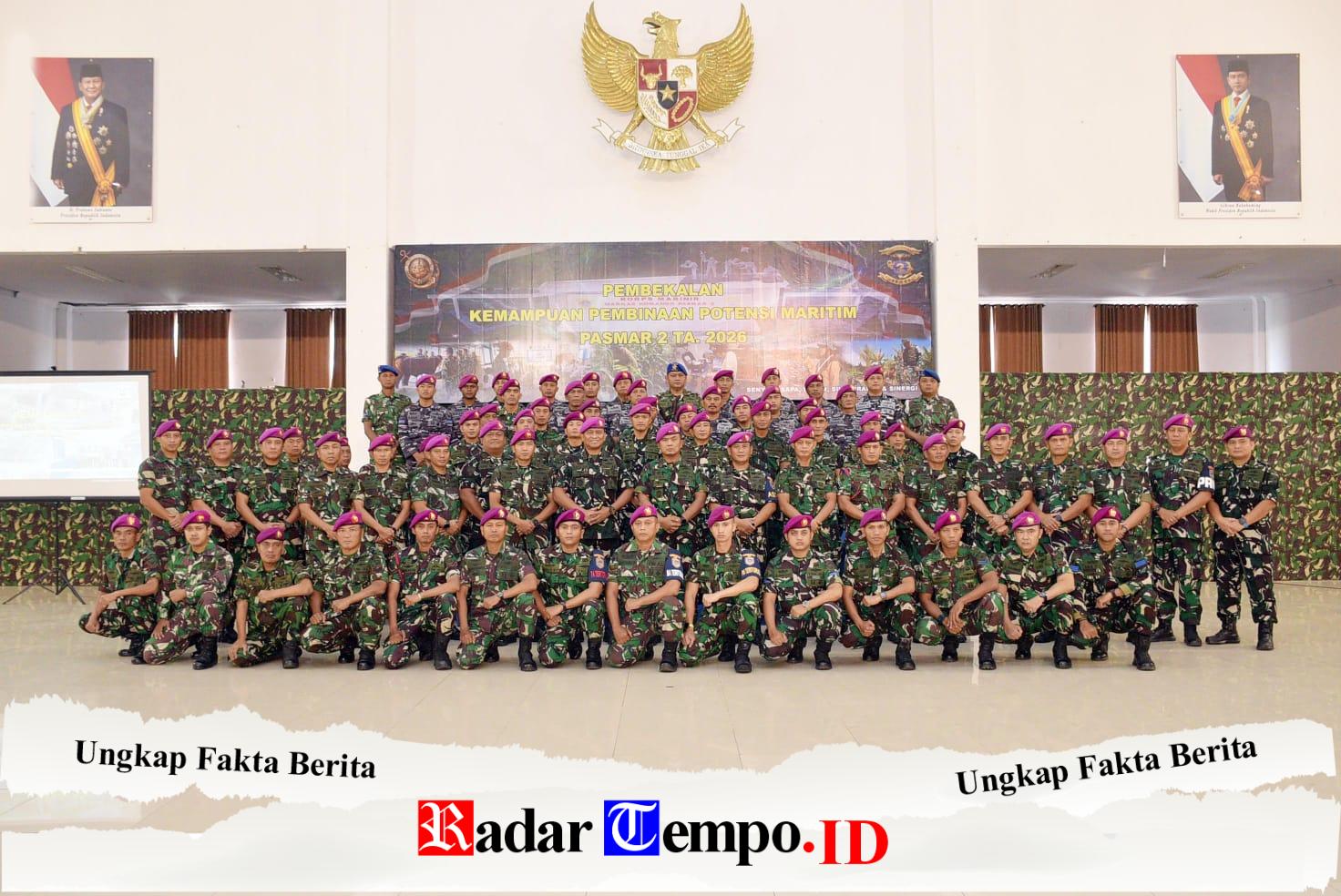 SIDOARJO Radartempo.id – Bertempat di Graha Gafur Chalik Mako Pasmar 2 Kesatrian Moekijat Gedangan Sidoarjo, Komandan Pasmar 2 secara resmi membuka Acara Pembekalan Kemampuan Pembinaan Potensi Maritim TW. I TA. 2026 (10/3).