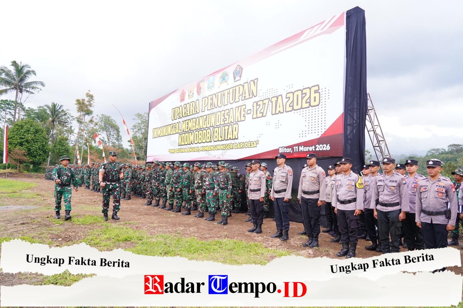 Blitar – Program TNI Manunggal Membangun Desa (TMMD) ke-127 Kodim 0808/Blitar resmi ditutup melalui upacara yang digelar di Desa Krisik, Kecamatan Gandusari, Kabupaten Blitar, Rabu (11/3/2026). Penutupan ini menandai berakhirnya kegiatan bakti TNI bersama masyarakat selama kurang lebih satu bulan dengan tema “TMMD Satukan Langkah, Membangun Negeri Dari Desa”. Dalam kegiatan tersebut juga dilakukan penyerahan hasil pembangunan fisik maupun non-fisik kepada Pemerintah Daerah untuk dimanfaatkan masyarakat.