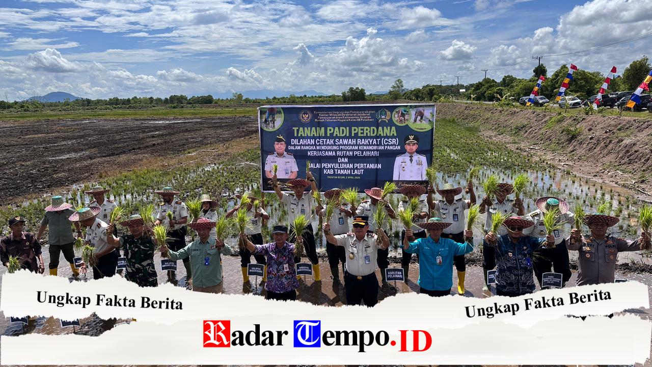 Tanah Laut – Dalam rangka mendukung program ketahanan pangan nasional, Batituud Koramil 1009-04/Takisung Kodim 1009/Tanah Laut Pelda Fauzi, menghadiri kegiatan tanam padi perdana di lahan cetak sawah rakyat bersama Rutan Kelas IIB Pelaihari yang digelar di Desa Pagatan Besar, Kecamatan Takisung, Kabupaten Tanah Laut, Kamis (02/04/2026).