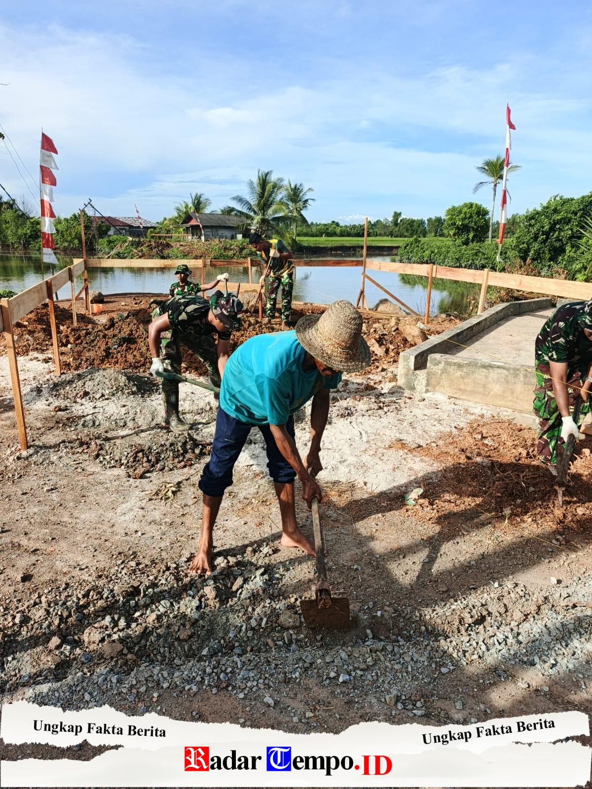 Personel Kodim 1009/Tanah Laut bersama masyarakat setempat tampak bahu-membahu melaksanakan penggalian lubang pondasi sebagai tahap awal pembangunan jembatan yang selama ini sangat dinantikan warga.