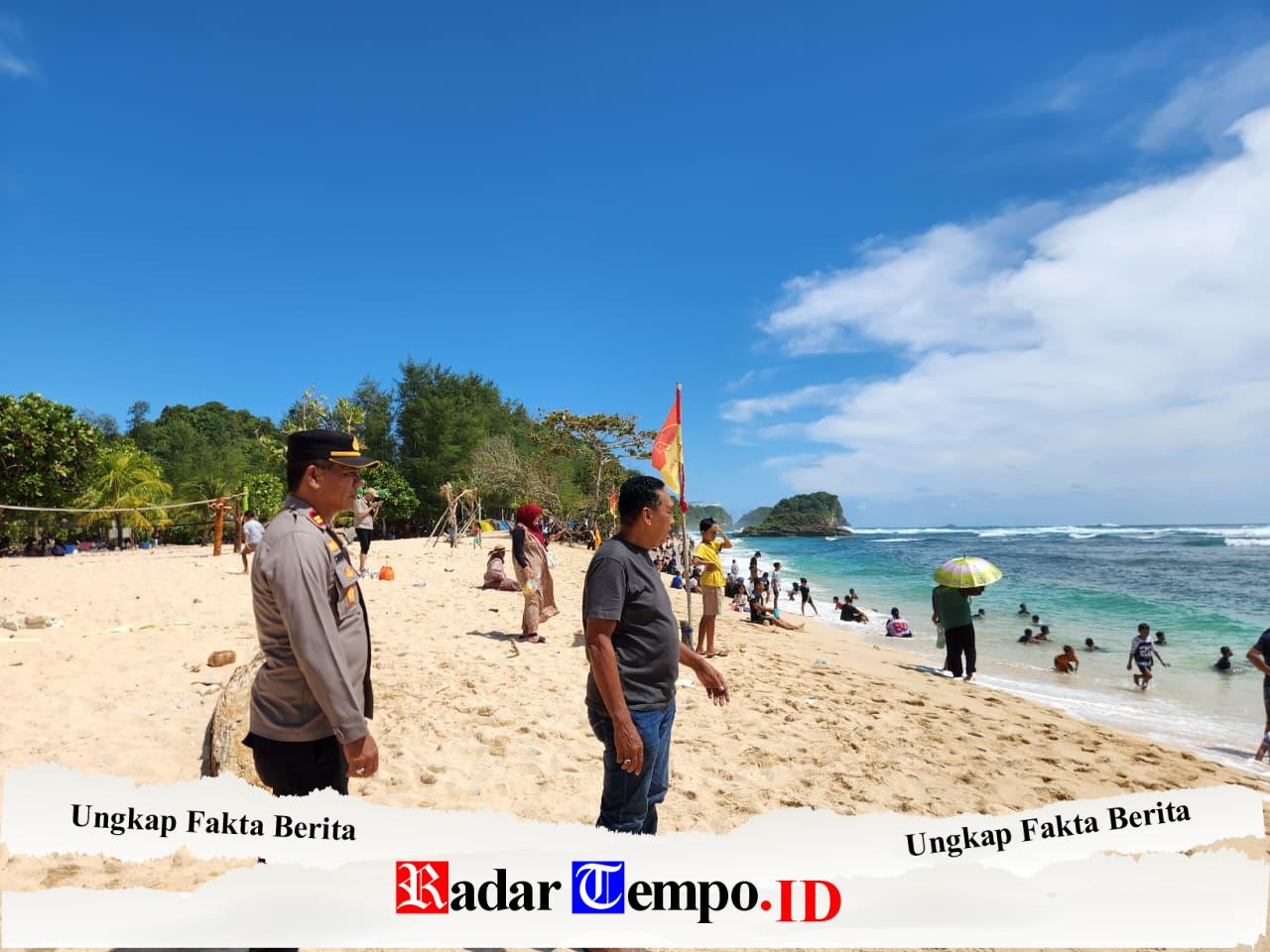 Selain pengamanan, petugas juga memberikan imbauan kepada wisatawan agar mematuhi rambu-rambu keselamatan, khususnya larangan berenang di area pantai yang dipasangi bendera merah.