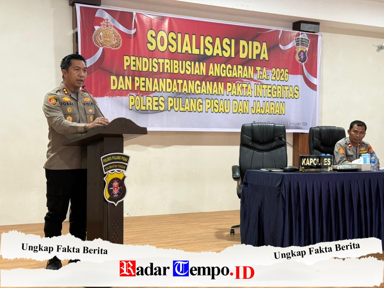 Radartempo.id Pulang Pisau – Kepolisian Resor (Polres) Pulang Pisau, Polda Kalimantan Tengah (Kalteng), secara resmi menggelar kegiatan sosialisasi Daftar Isian Pelaksanaan Anggaran (DIPA) Tahun Anggaran 2026. Kegiatan tersebut dilaksanakan bertempat di Aula Satya Haprabu Mapolres Pulang Pisau pada Rabu (21/01/2026).