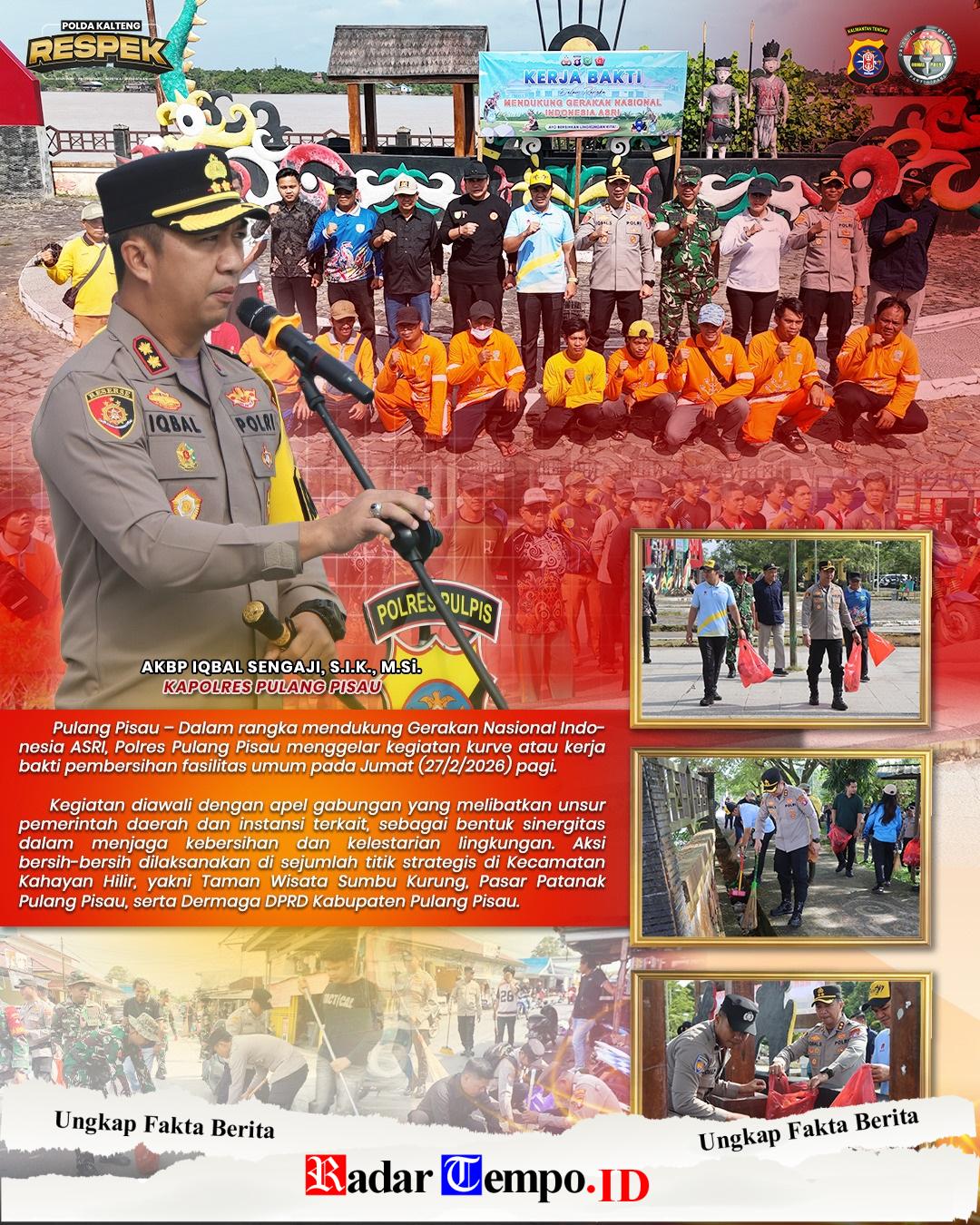 Pulang Pisau – Polres Pulang Pisau mengambil langkah nyata dalam mengawal inisiatif nasional yang dicanangkan Presiden Prabowo Subianto. Dengan semangat gotong royong, Polres Pulang Pisau mempelopori aksi kerja bakti massal bertajuk Gerakan Indonesia ASRI (Aman, Sehat, Resik, Indah) yang digelar serentak pada Jumat (27/02/2026) pagi.