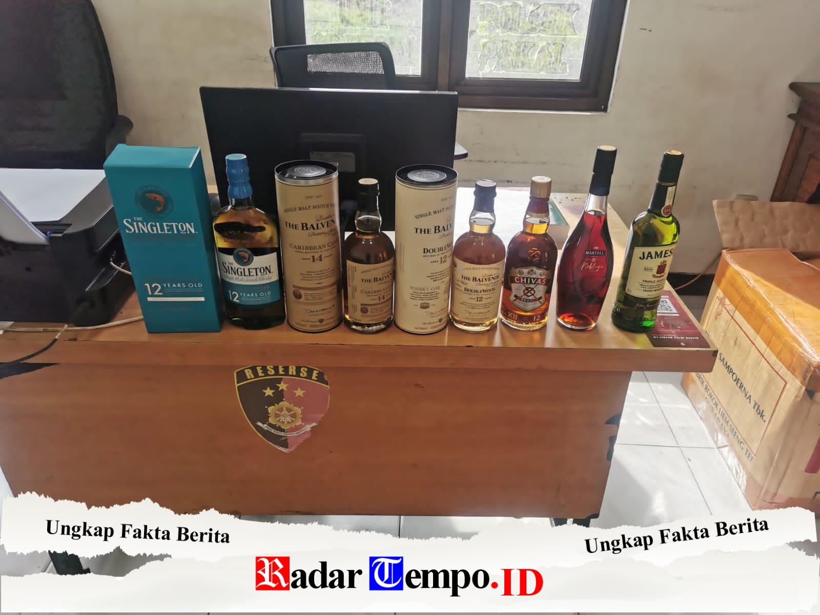 Selain itu Polisi juga menyita berbagai jenis minuman beralkohol, mulai dari produk impor hingga puluhan botol arak Bali yang dikemas dalam botol air mineral.