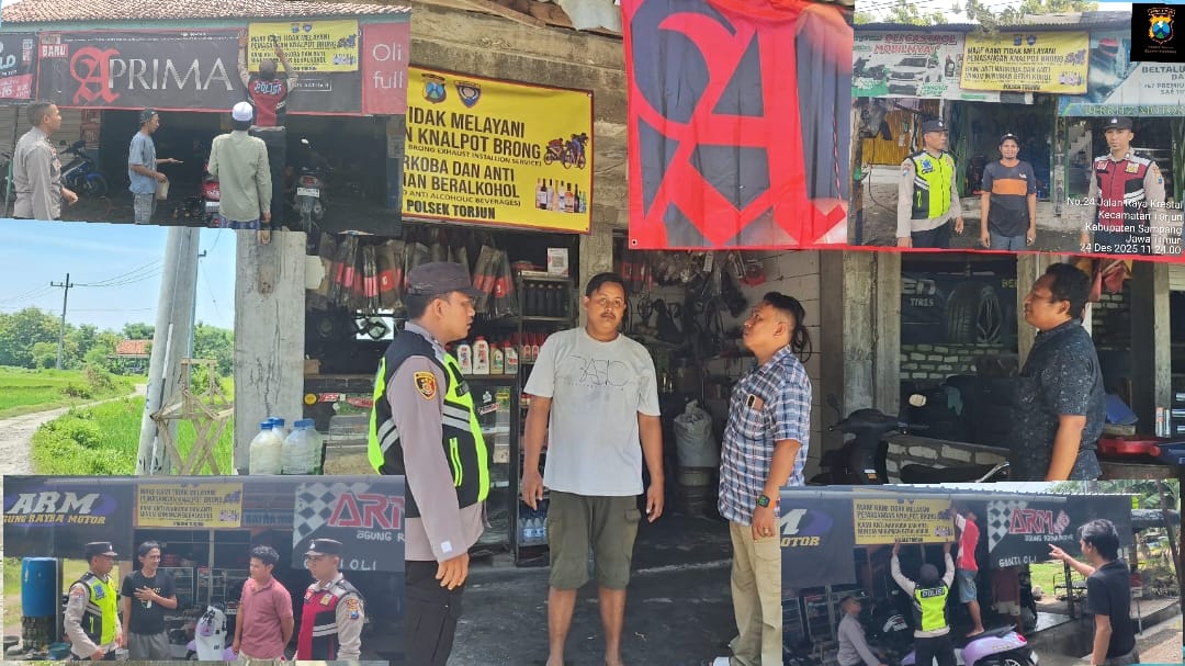 Petugas Polsek Torjun melakukan kunjungan langsung ke lima bengkel sepeda motor yang menjadi sasaran khusus, dengan pesan tegas untuk tidak melayani pemasangan maupun memperdagangkan knalpot brong atau yang tidak sesuai spesifikasi teknis. Bengkel-bengkel yang menerima himbauan tersebut adalah: Bengkel milik Budi di Jl. Raya Pangongsean, bengkel di Simpang 3 Jls Jl. Raya Pangongsean, Bengkel Herman Motor milik H. Herman di Jl. Raya Krampon, Bengkel Agung Rhaya Motor milik Bpk. Karim di Jl. Raya Krampon, serta Berritz Motor milik Bpk. Salim di Jl. Raya Tangkat, Torjun.