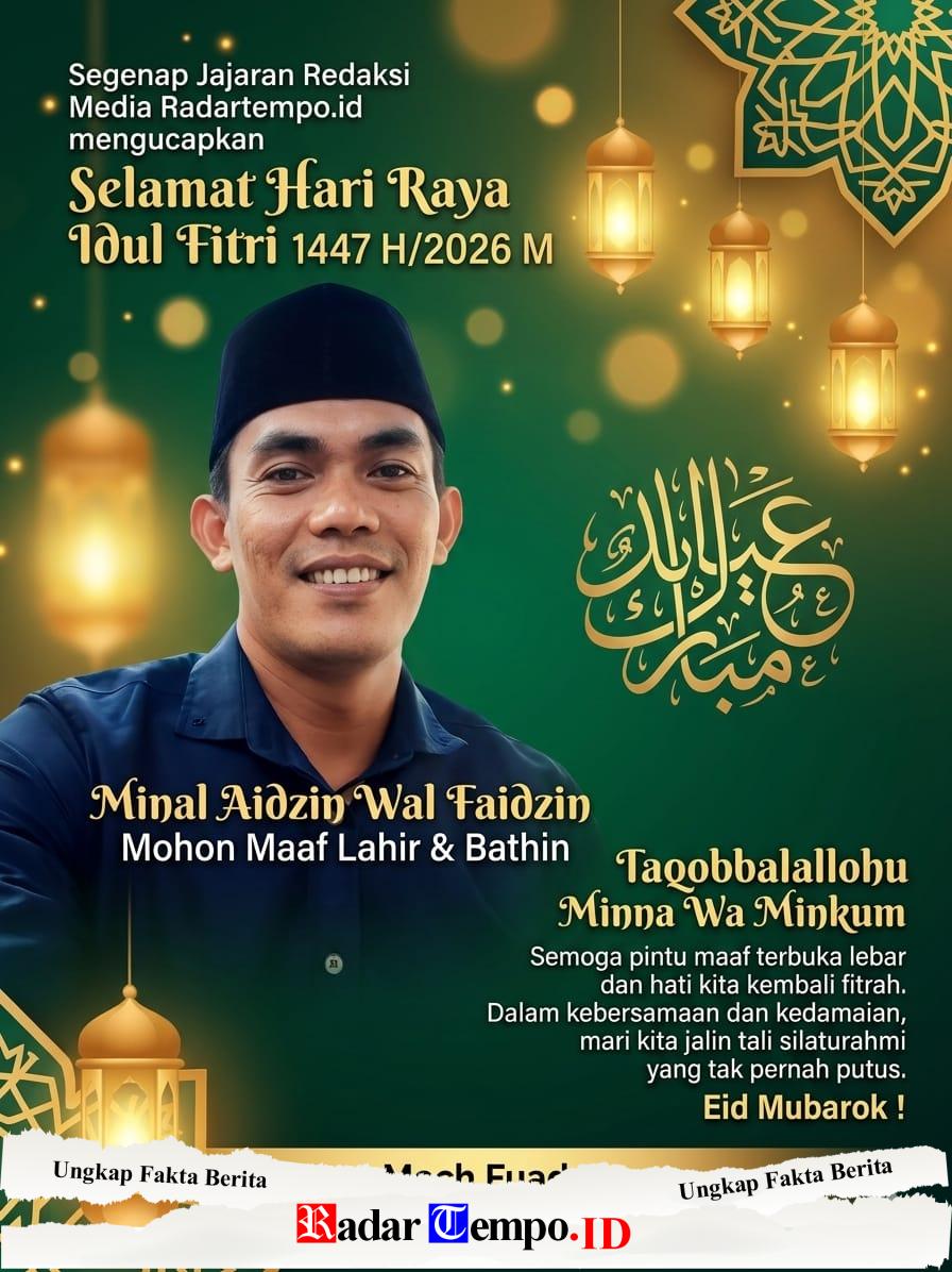 “Idulfitri adalah momentum untuk kembali ke fitrah, saling memaafkan, serta mempererat tali silaturahmi. Kami segenap keluarga besar Radartempo.id mengucapkan Selamat Hari Raya Idulfitri 1447 Hijriah, mohon maaf lahir dan batin,” ujar Moch Fuad saat ditemui di malam takbiran.