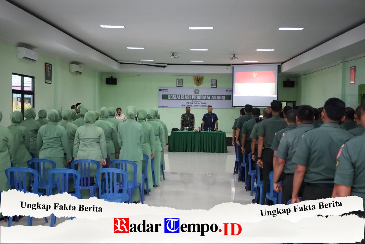 Pelaihari – Kodim 1009/Tanah Laut menerima sosialisasi Program ASABRI yang mengacu pada Peraturan Pemerintah (PP) Nomor 54 Tahun 2020 tentang Pengelolaan Program Asuransi Sosial bagi Prajurit TNI, Anggota Polri, serta ASN di lingkungan TNI dan Polri, bertempat di Aula Parikesit Makodim 1009/Tanah Laut, Selasa (10/02/2026).