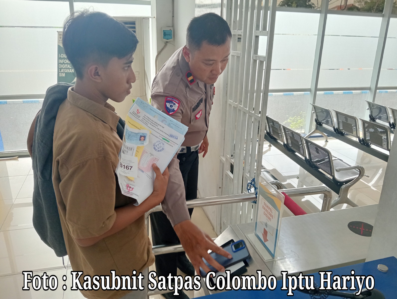 Masih kata Kasubnit, perlu untuk Kami sampaikan, atas perintah Kanit Regident yakni AKP Tri Arda Meidiansyah, S.TR.K, Sik,, bahwa yang berkait pelayanan Prima di Satpas SIM Colombo, maklumat ini merupakan wujud nyata dari upaya Polri dalam mewujudkan pelayanan publik yang berkualitas dan membangun kepercayaan masyarakat, sejalan dengan program Polri Presisi (Prediktif, Responsibilitas, dan Transparansi Berkeadilan).